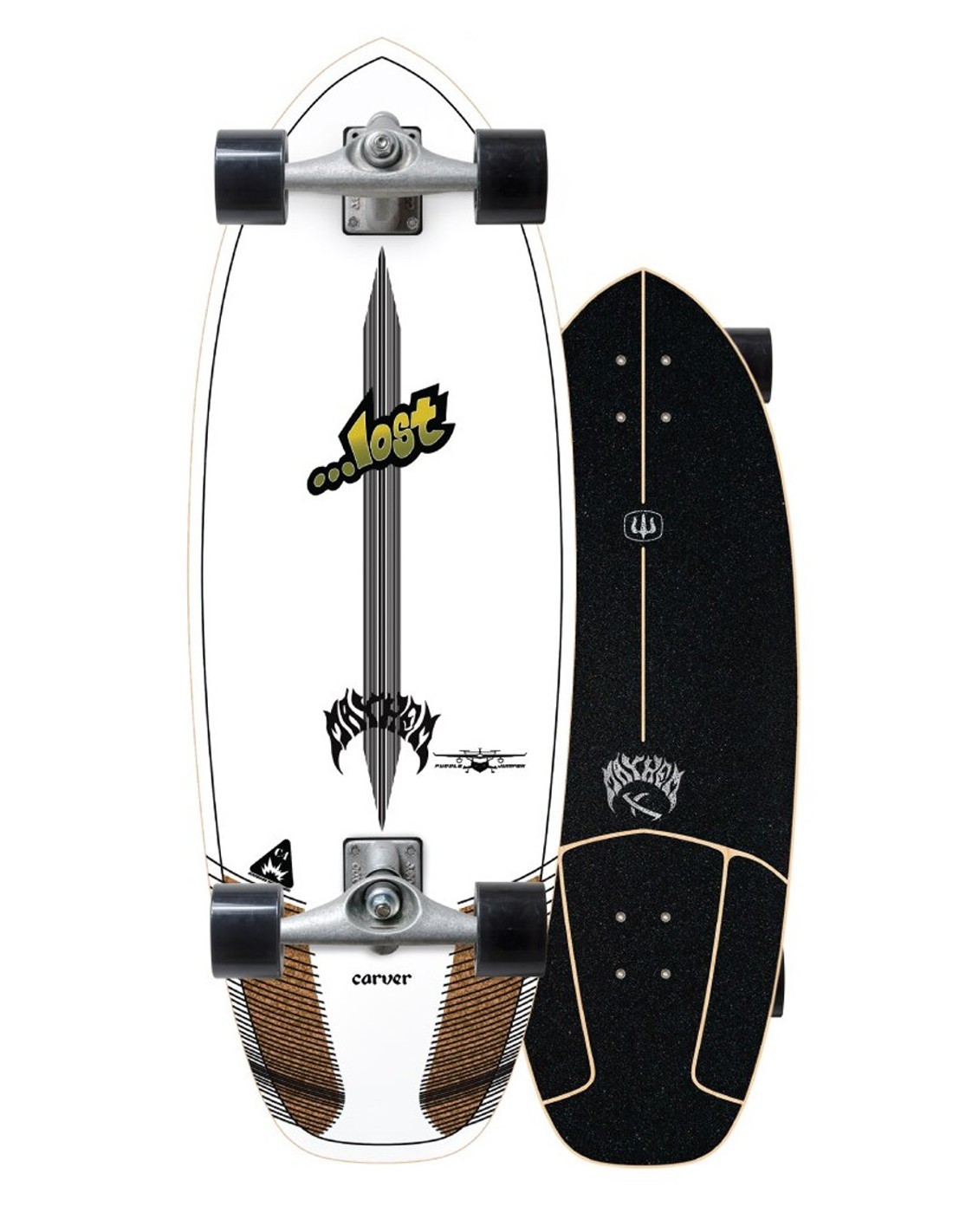 The surfskate CARVER x Lost: Puddle Jumper 30.5" CX. One of the new surf skate boards from Carver in the "Lost" series. Precise and fun thanks to its rounded shape, this board will enable both experienced skaters and beginners to perform all kinds of tricks!