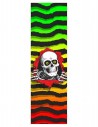 El grip de skateboard Powell Peralta made in USA, con su logo skull ripper y motivo rasta zebra. Grano de carburo de silicio. Placa de 9" x 33", impresa por Skate One.
