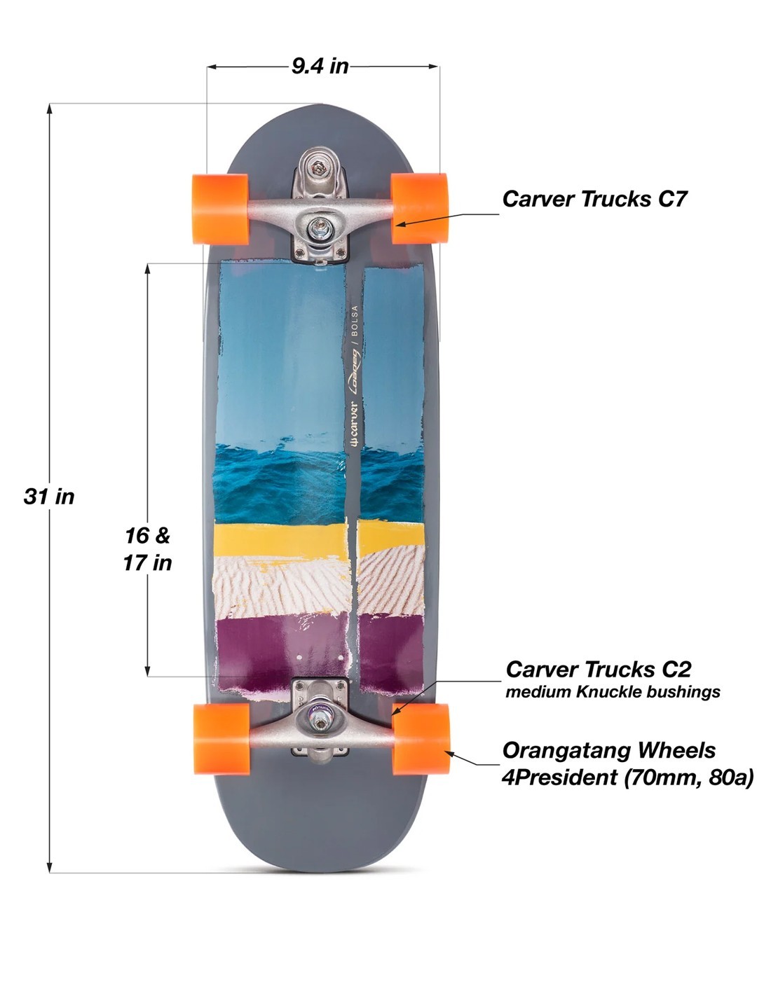 Que ce soit pour le carving, le pumping, le cruising ou encore le bowl, la CARVER x Loaded Bolsa 31" saura s'adapter pour surfer sur le bitume !