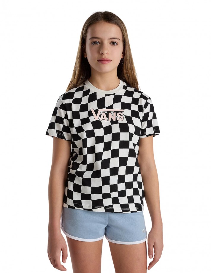 VANS Warped 66 Check Crew - Nero/Marshmallow - Maglietta da bambino