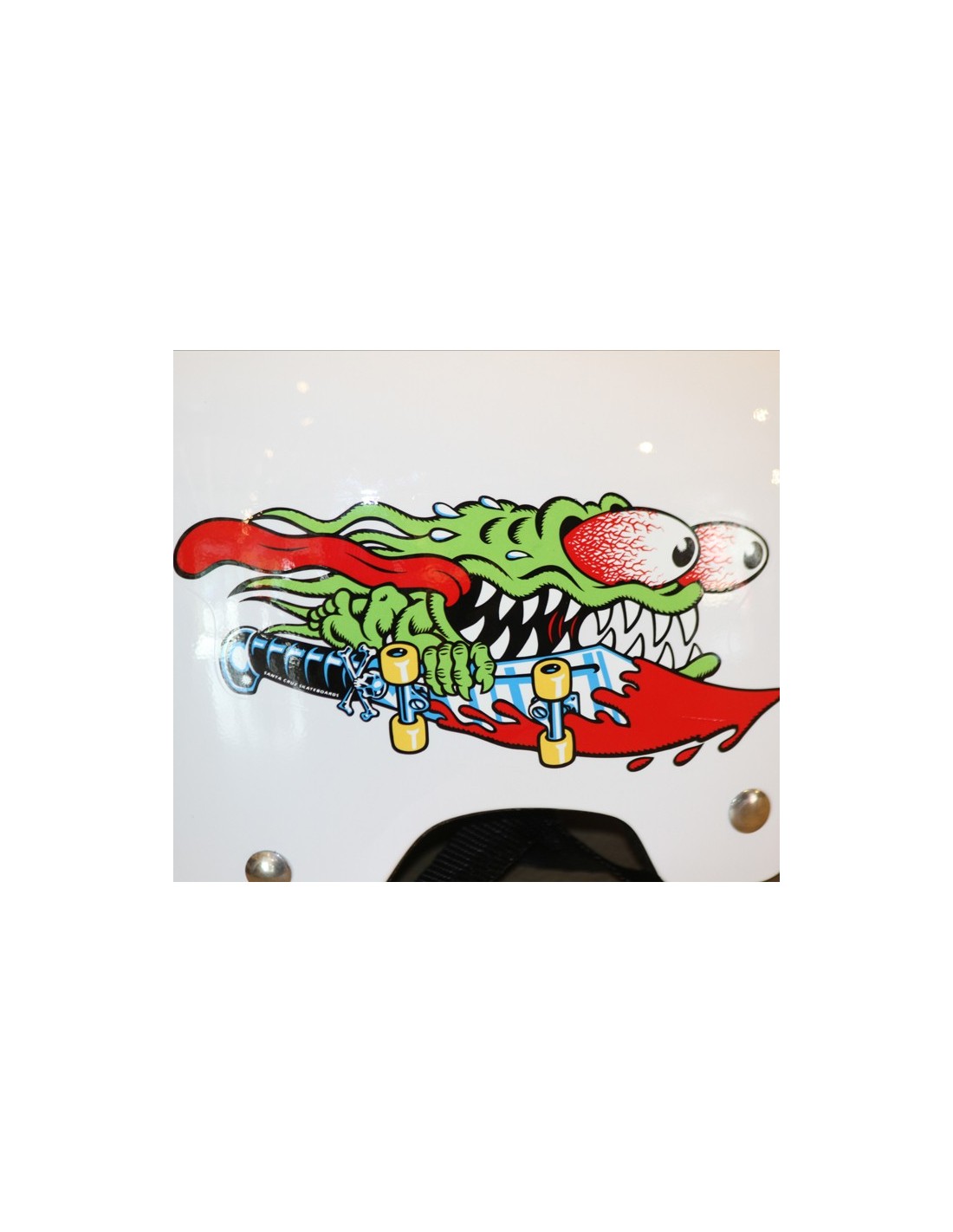 Casco per bambini Santa Cruz White Bullet "Slasher", certificato EN-1078. Una protezione necessaria e perfettamente adatta allo skateboarding. Colore: bianco con disegno Slasher a destra.