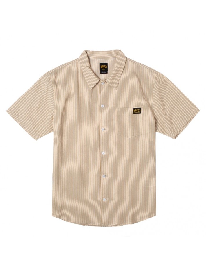 RVCA Dayshift Stripe - Khaki - Overhemd | Maat : S | Kleur : Beige